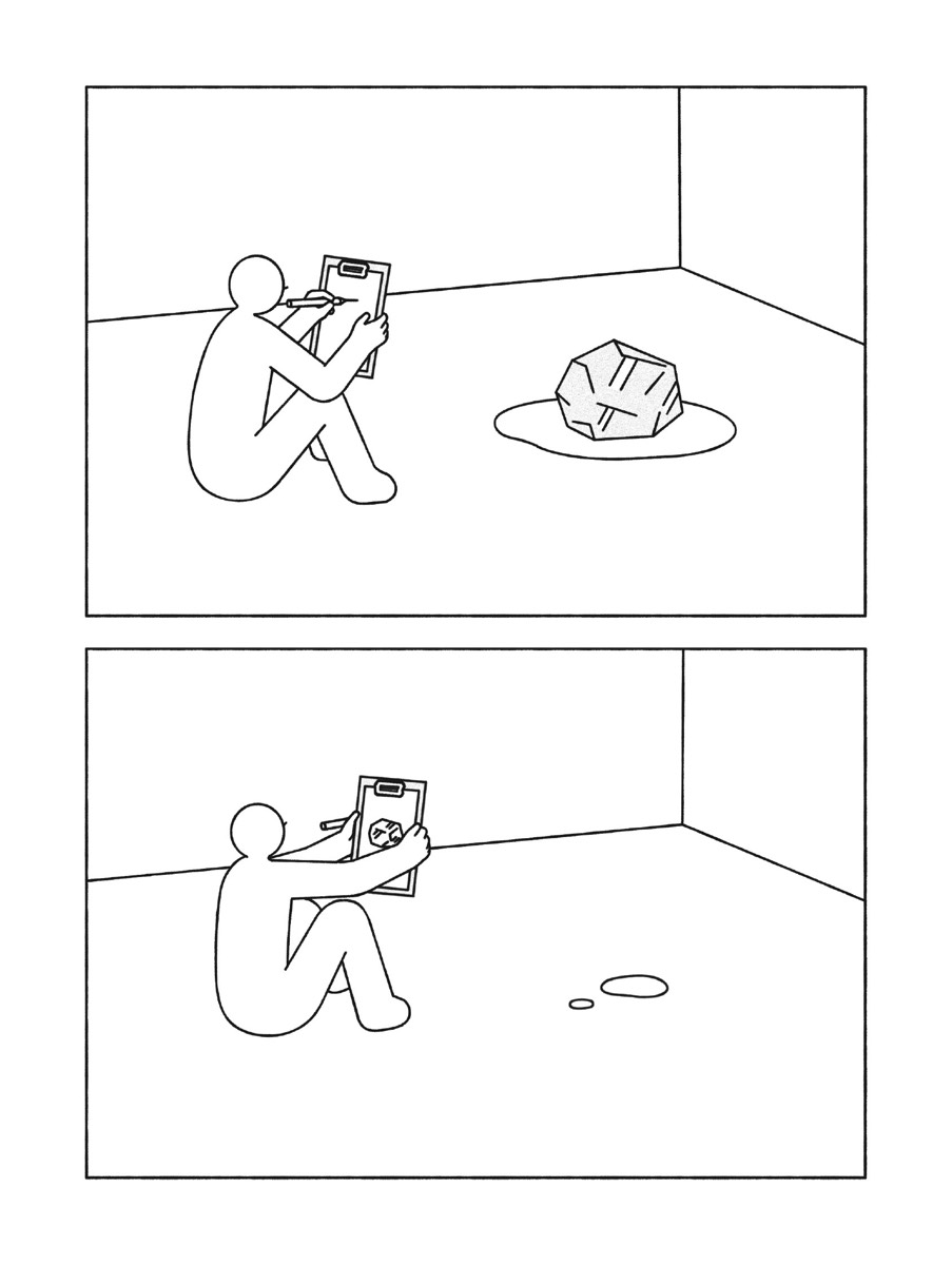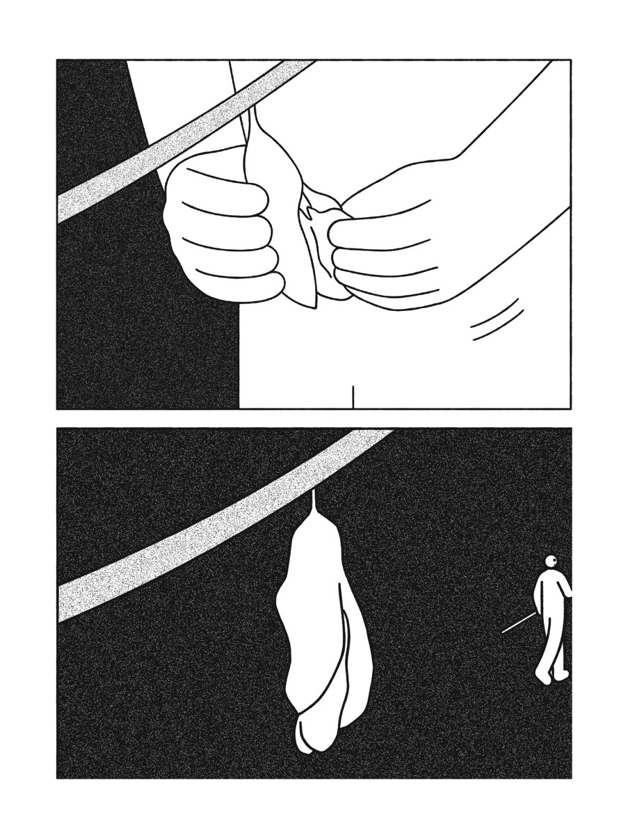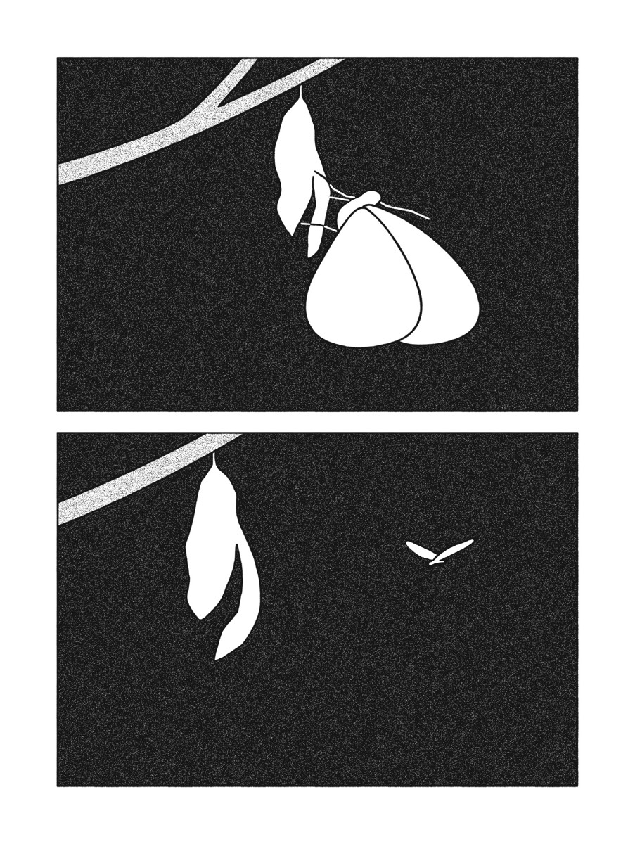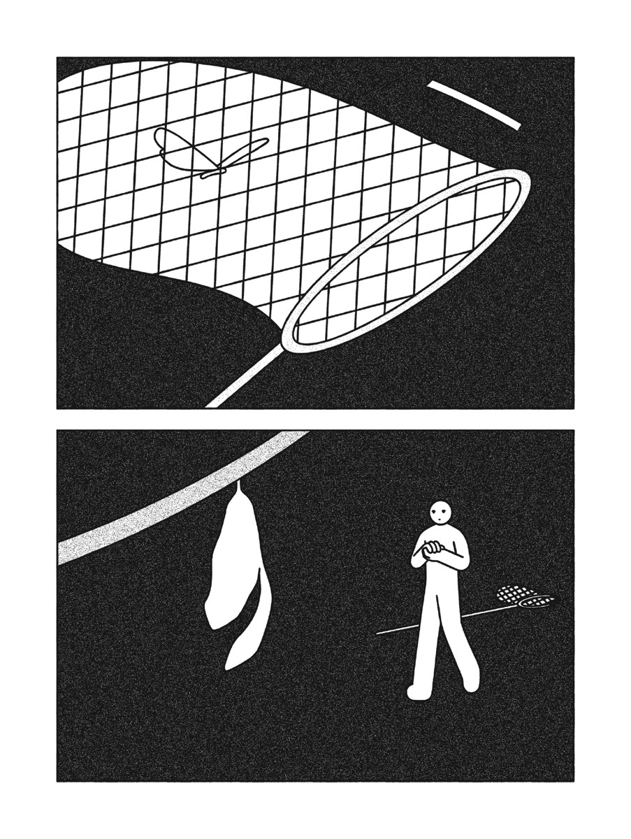 Un preneur de son enregistre plantes et cailloux pour les compiler sur CD. Une femme, emportée par sa lecture, se fait engloutir tout entière dans la plus luxuriante des jungles. Un homme décroche la lune dans le ciel pour la convertir en pièce de monnaie. En quelques cases, Woshibai développe sa vision parabolique du monde à travers des personnages anonymes en prise avec leurs environnements. Les récits courts et muets qui composent 20 KM/H font aussi bien appel à la poésie qu’à la philosophie. Si certains dénotent d’un onirisme saillant, d’autres se feront plus pragmatiques, mais tous se liront avec une fascination pour la volupté et la singularité de la ligne claire de ce jeune auteur chinois. Tout comme l’épure de son univers graphique, la narration est construite à partir de l’essentiel de ce que la séquentialité autorise, c’est-à-dire une seule action par case. Vingt kilomètres par heure, c’est la vitesse de déplacement d’un papillon.