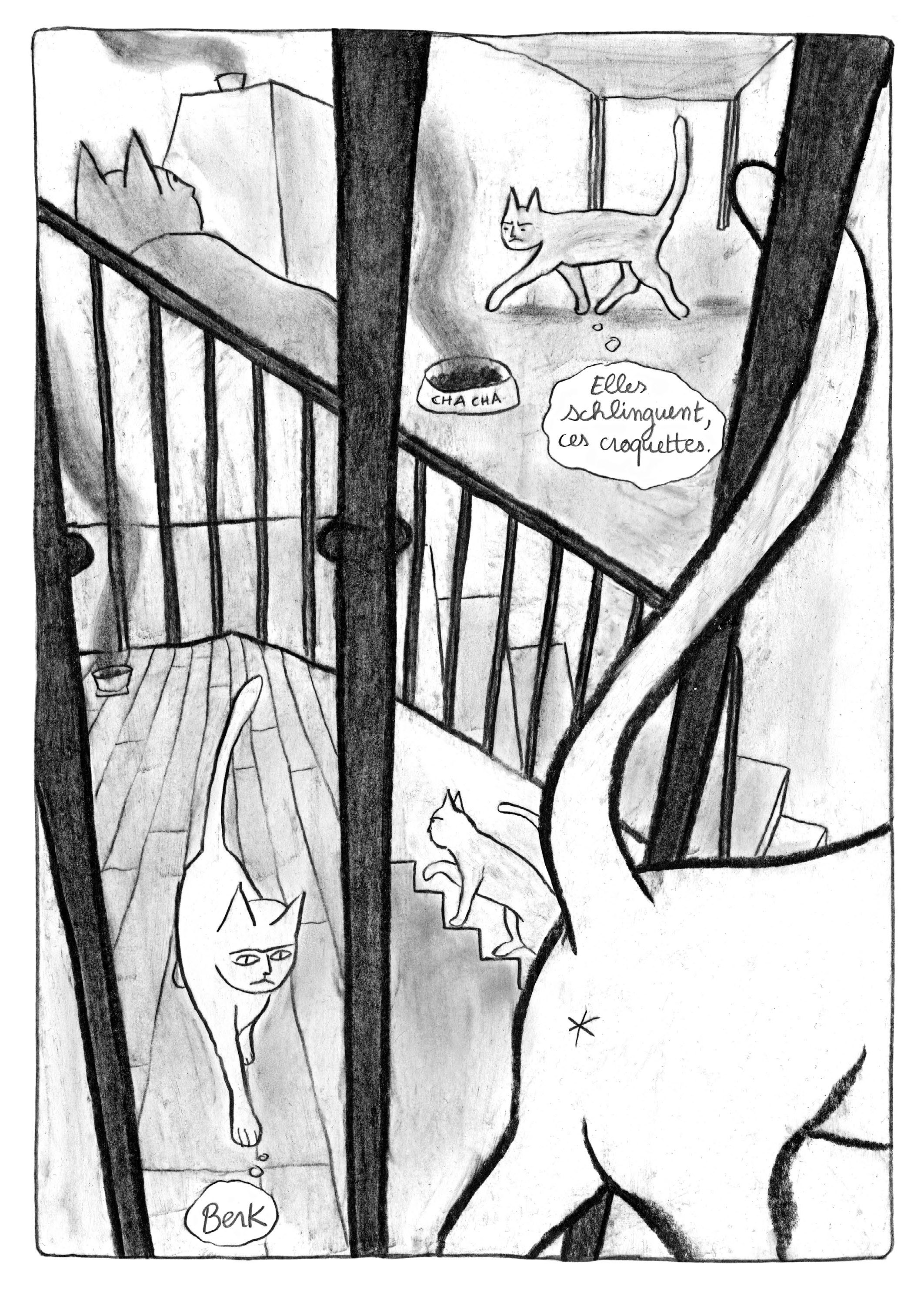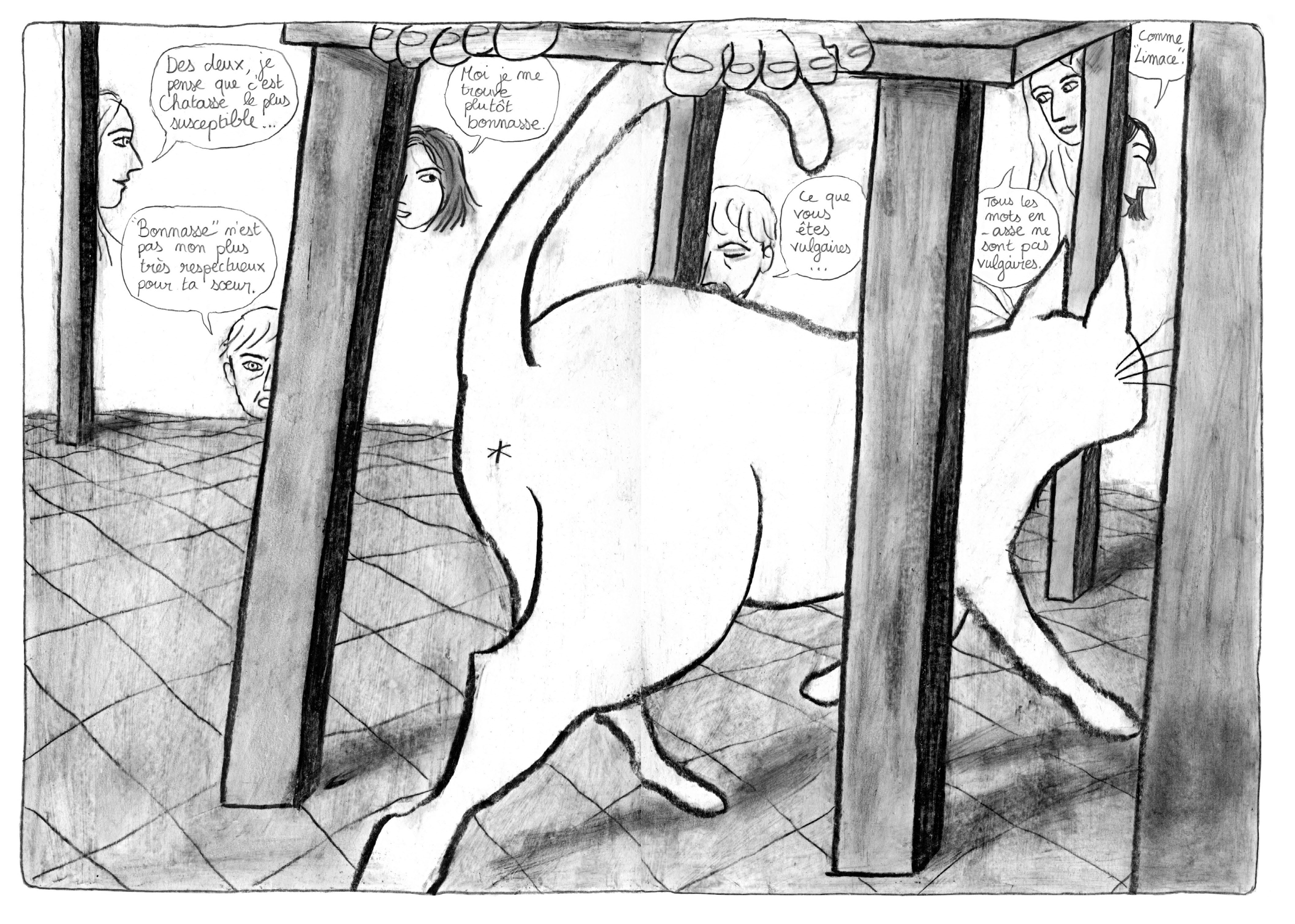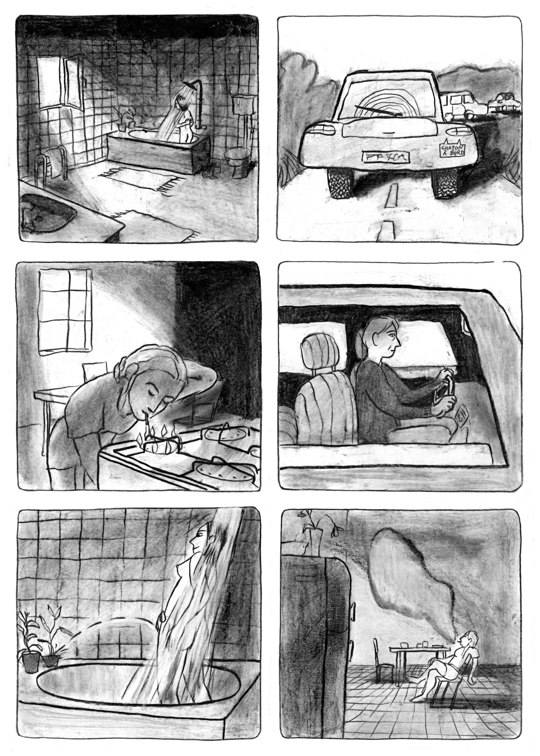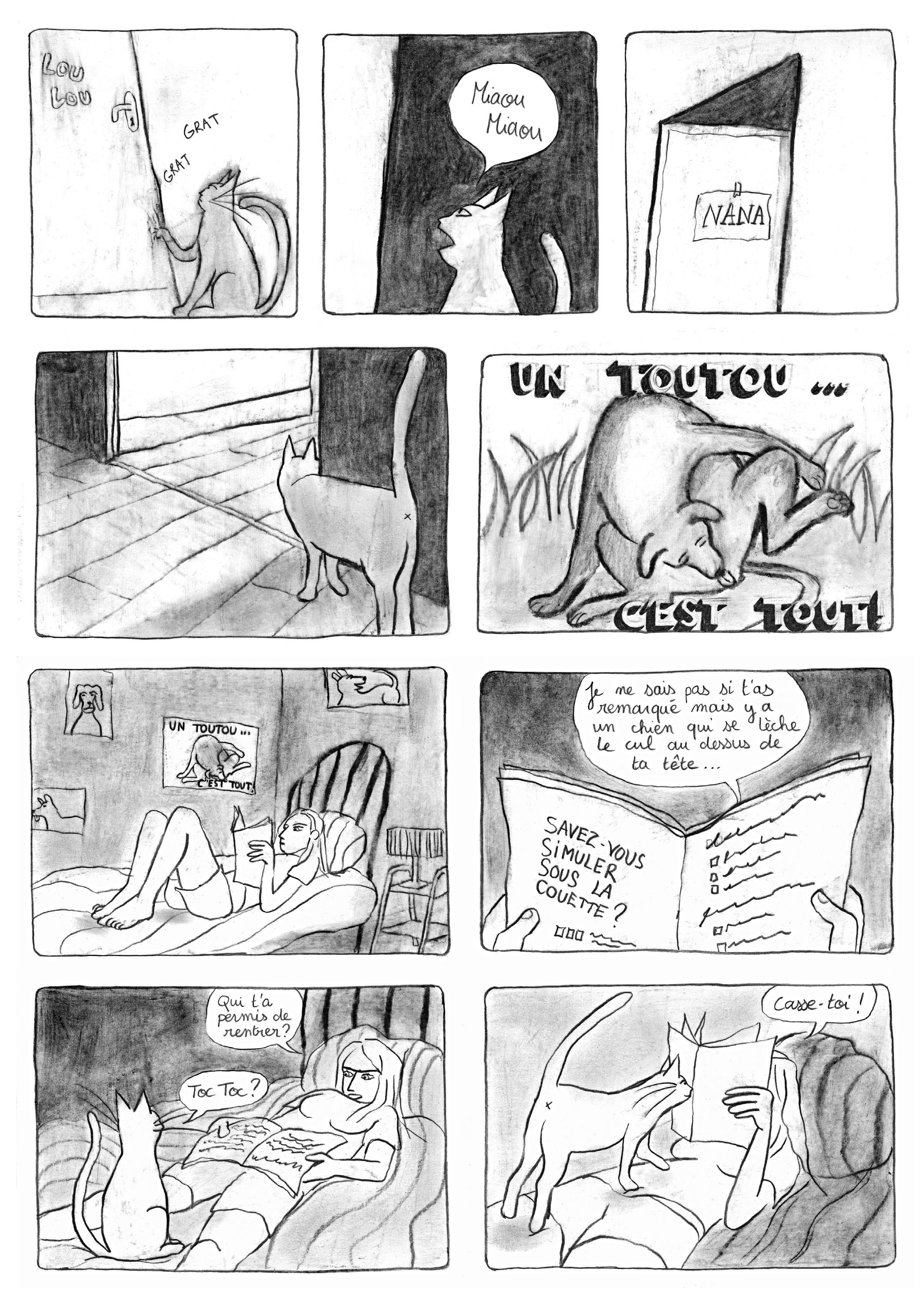 La bande dessinée est son terrain d’expérimentation : les mots et les images se rencontrent et dialoguent vivement, naturellement. Elle raconte souvent des histoires avec des personnages qui parlent d’amour.