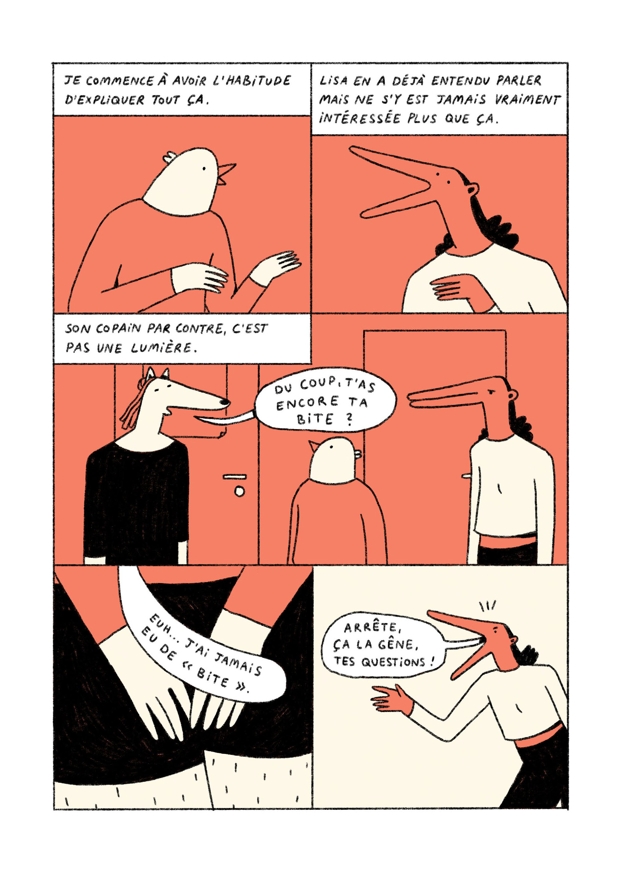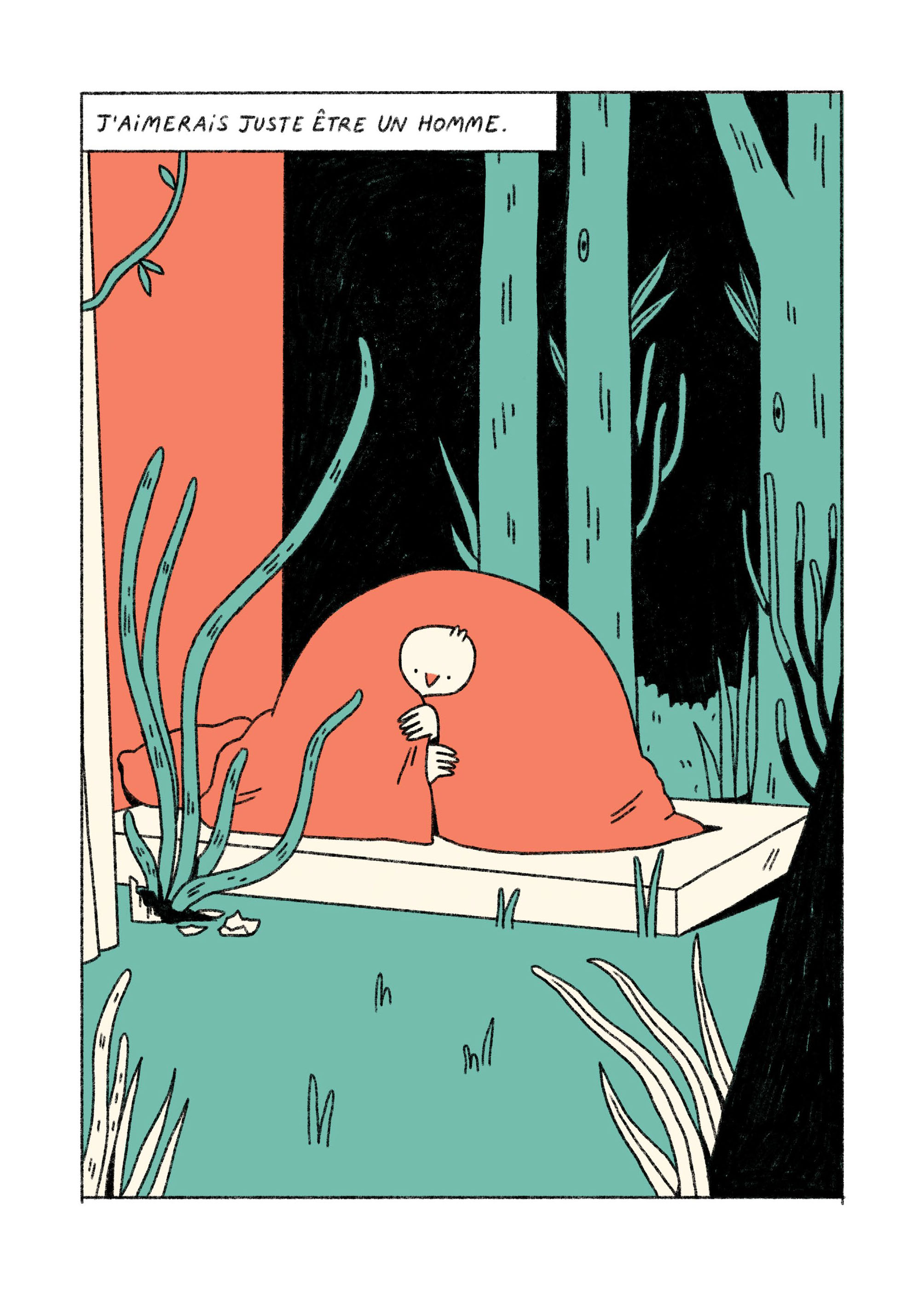 À travers une expérience concrète, Peer Jongeling raconte dans sa bande dessinée mi-fictionnelle, mi-autobiographique, le parcours d’une transition, d’une possible détransition et d’un nouveau départ. Construit à partir de réflexions intimes sur la dysphorie de genre, mais aussi de discours conscients des réalités vécues par les membres de la communauté LGBTQIA+, Emil·ia est un récit où cohabitent les incertitudes, les trajectoires, les rêves et le sensible. L’épure du découpage, la force de l’évocation, de la symbolique et du second degré de cette jeune autrice allemande viennent adoucir les lignes d’une narration rigoureuse.