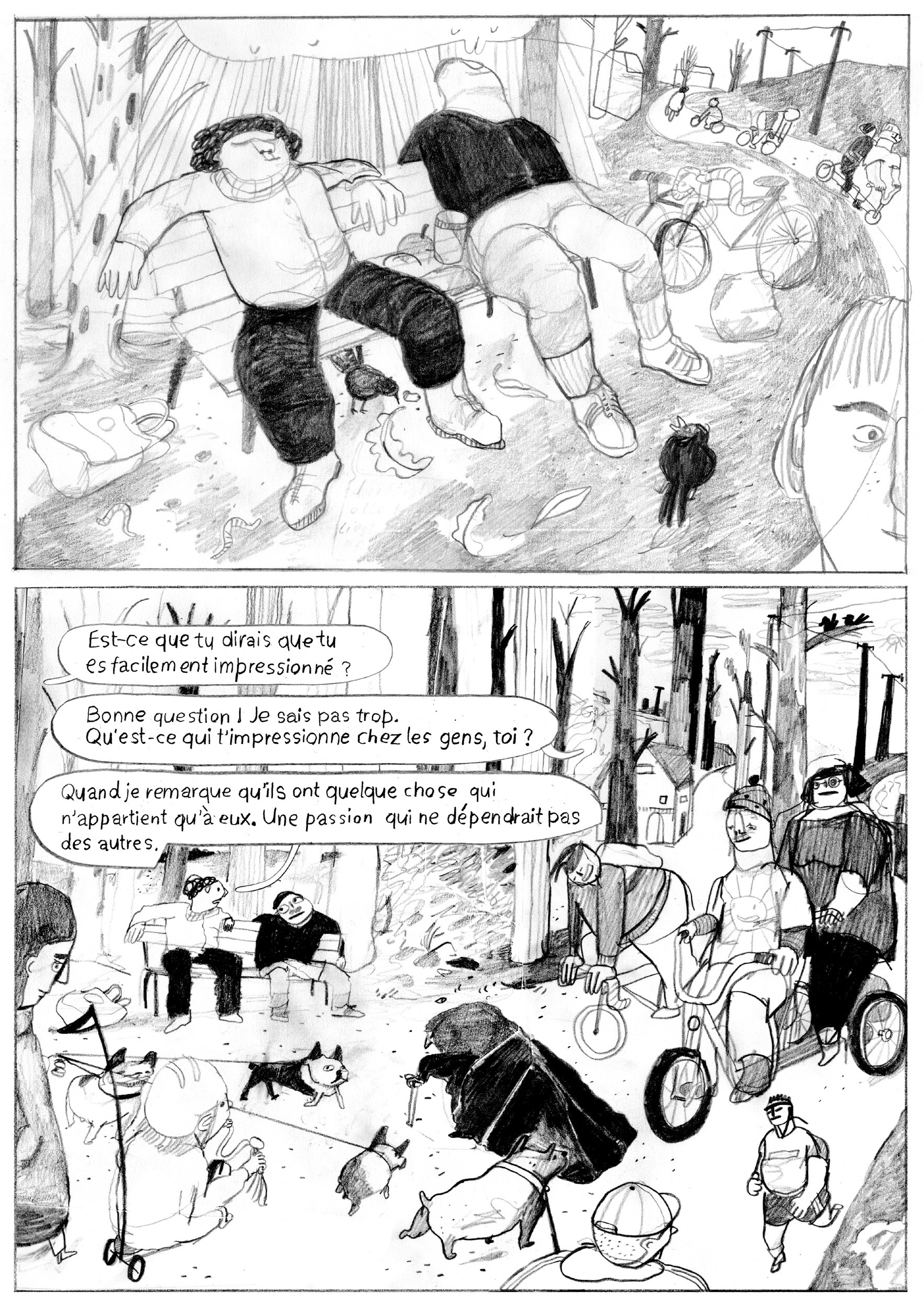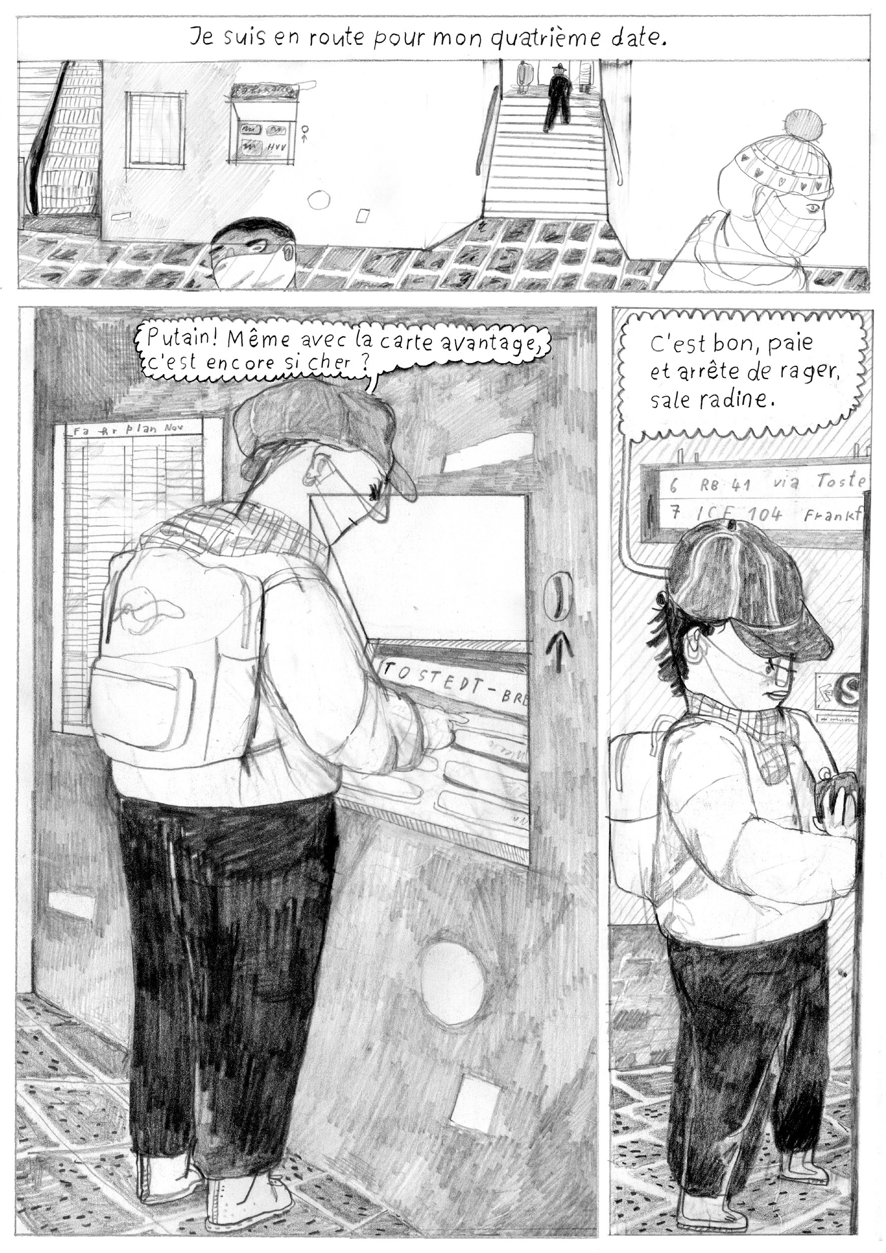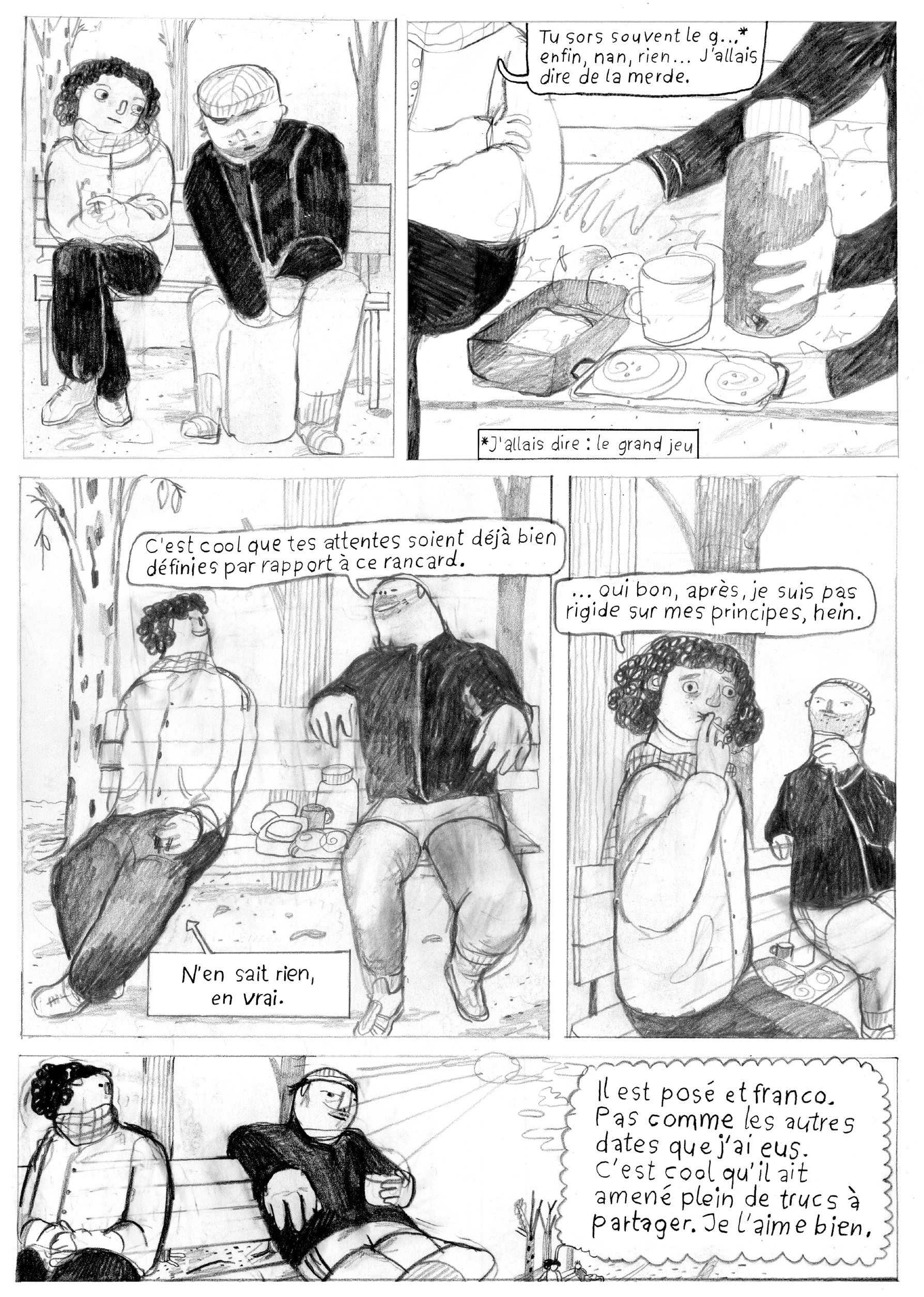 Oh Cupid nous invite dans l’intimité de l’autrice et nous témoigne avec autodérision comment séduction rime parfois avec vulnérabilité, excitation avec maladresse. Dans ce jeu de rôles où personne n’est dupes et où il s’agit de ne surtout pas tomber amoureux, Helena doit se montrer impassible tout en donnant l’impression d’être naturelle. Ses tentatives de plaire tombent tellement à plat qu’elle s’enfonce de plus en plus dans l’embarras. On le sait, l’entremise numérique peut parfois induire un certain nombre de désillusions et de relations sans lendemain. Avec le recul, elle s’autorise même à badiner avec l’amour. Helena Baumeister détonne avec sa façon bien à elle de rendre compte de ses émotions et sentiments à l’aide d’un style graphique aussi charbonné que vivant. Avec ce premier livre, la jeune autrice hambourgeoise avance une narration libérée sur la sexualité et l’amour d’aujourd’hui.